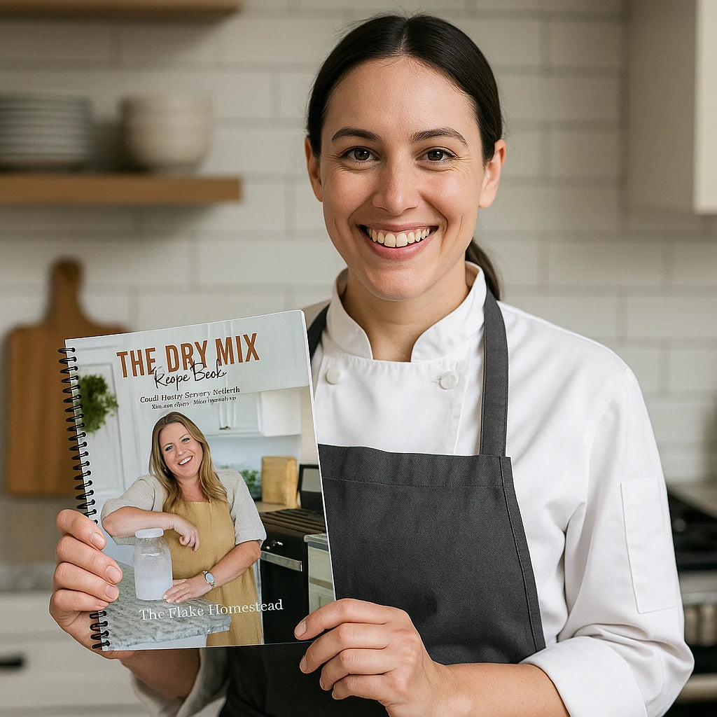 The Dry Mix Recipe Book was created by The Flake Homestead — a trusted voice in the homesteading and clean living space. The recipes are kitchen-tested, community-approved, and backed by thousands of satisfied customers and real TikTok success.
