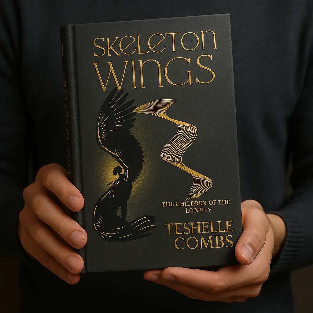 This is the only printed version of Skeleton Wings — a limited collector’s edition featuring sprayed edges, reversible foiled dust jacket, ribbon bookmark, and exclusive interior artwork. Once sold out, it will not be reprinted in this format.